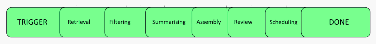 For the AI Newsletter Agent, we outlined six major steps:
